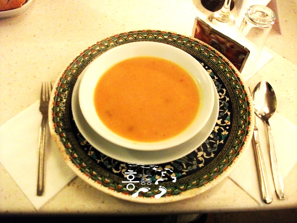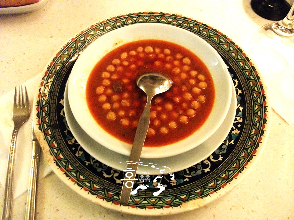 이 식당에서는 두 가지 초르바가 제공된다. 렌틸콩을 갈아서 묽게 끓인 렌틸 초르바와 병아리콩을 통째로 넣어 토마토 베이스 국물에 끓여낸 병아리콩 초르바가 그것이다.