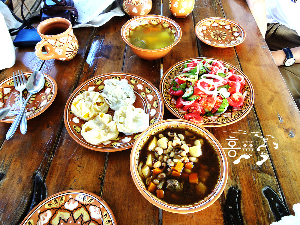 우즈베키스탄 부하라의 슈르빠와 만틔. 만틔 또한 튀르크계 음식으로 튀르키예와 중앙아시아에 존재하는 '만두'다.