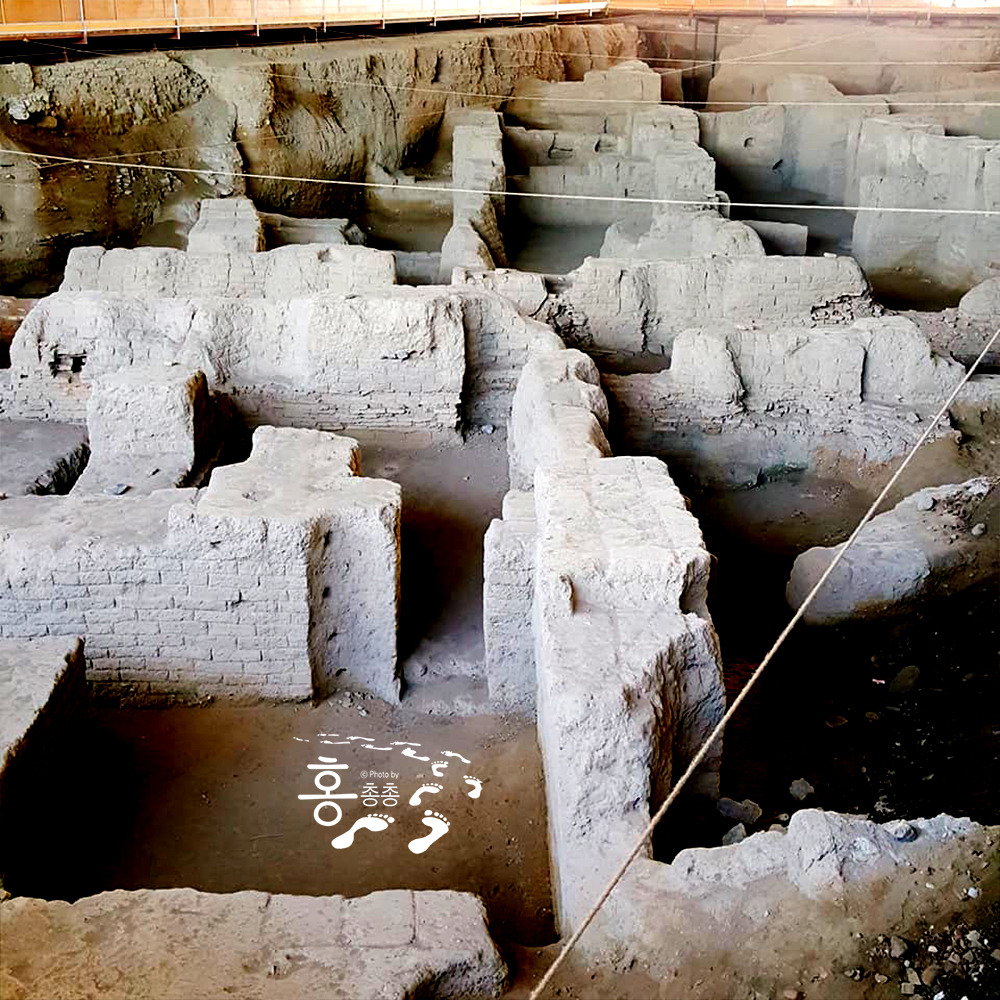 도시 규모를 추측해 보건대, 아직 발굴이 다 끝난 상태가 아니라고 해도, 관람하기가 영 불편하다. 하지만 유적지를 돌아다니다가 또 기묘한 기분에 빠진다. 전공 때문에 고고학 발굴 경험이 있고, 여러 유적지의 복원 형태도 공부해 본 바, 이런 고대 유적지 사이를 돌아다니고 있으면, 마치 CG처럼 당시의 북적거리던 도시가 머릿속에서 복원되어 오버랩되기 일쑤다. 오랜 학문병(일종의 직업병?)이다.