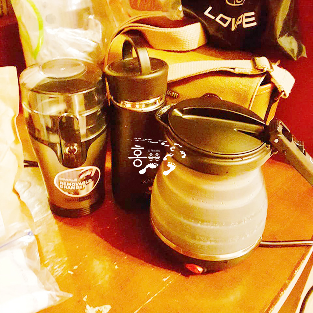 그래서 이번 여행은 오만(Oman) 출발부터 아예 드립커피 일체 도구를 가지고 왔다. 그라인더와 텀블러, 휴대용 포트가 그것이다. 좀 미친 짓 같지만... 그런대로 만족.