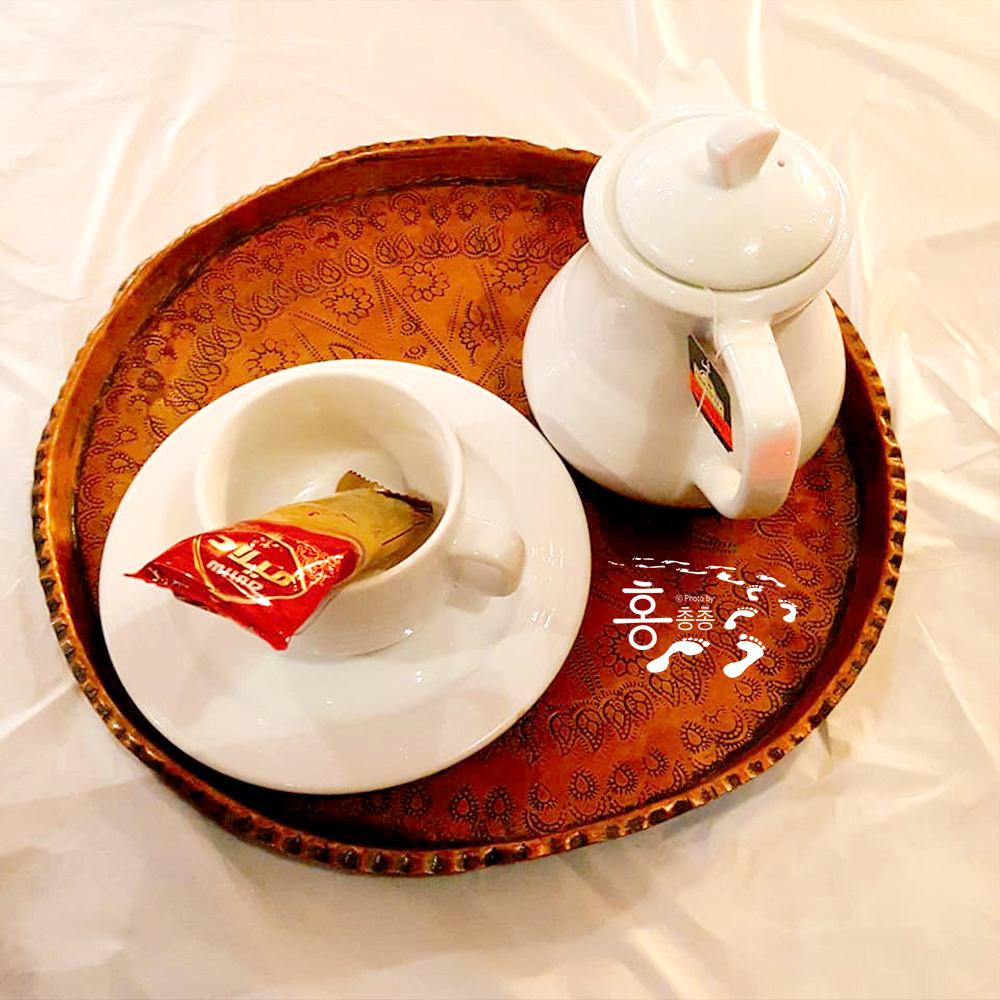 맛있게 다 먹고 나니 차이까지 디저트로 제공된다. 완벽한 풀코스다. 이란에 오니 식욕이 팔팔하게 살아나, 3개월 중국여행 때처럼 항상 배부르게 다니는 것 같다.