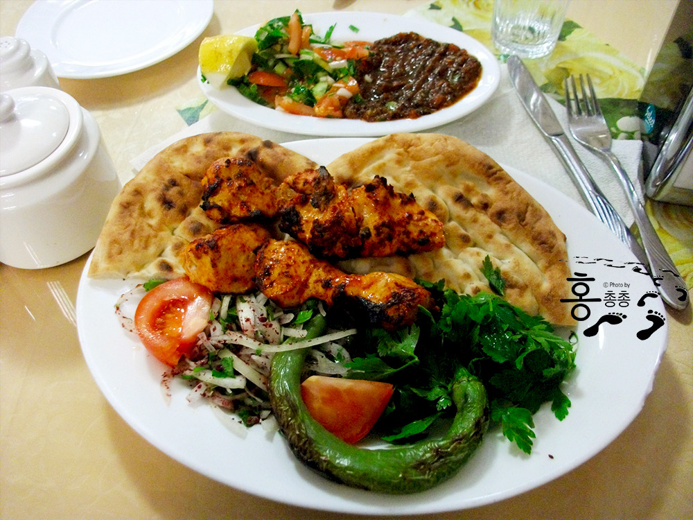 앙카라의 치킨쉬쉬 케밥은 빵 이불을 깔고 서빙된다.