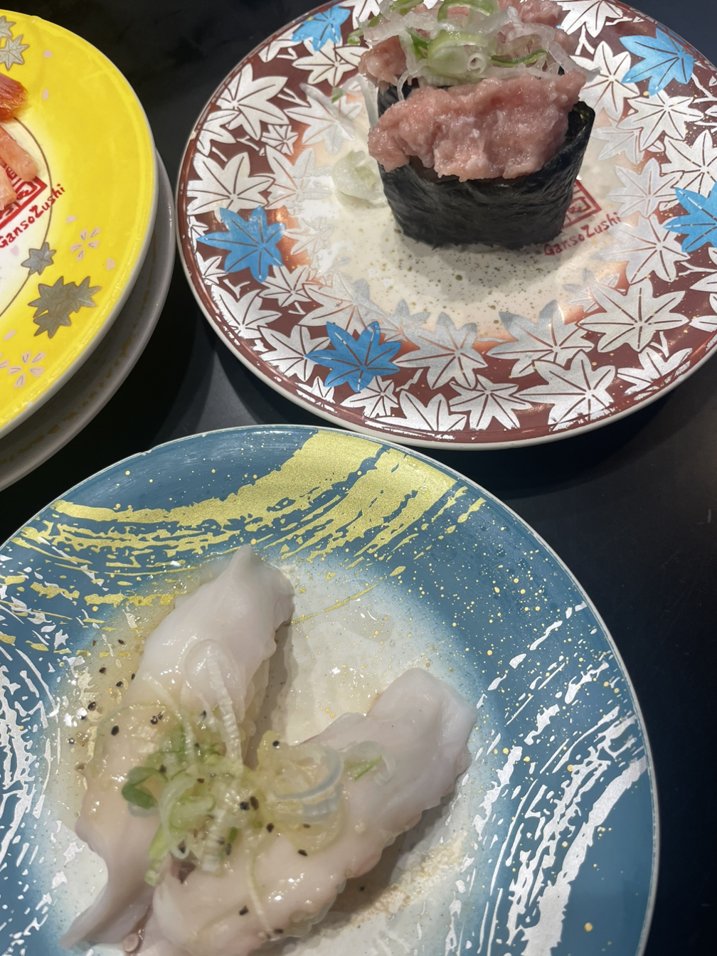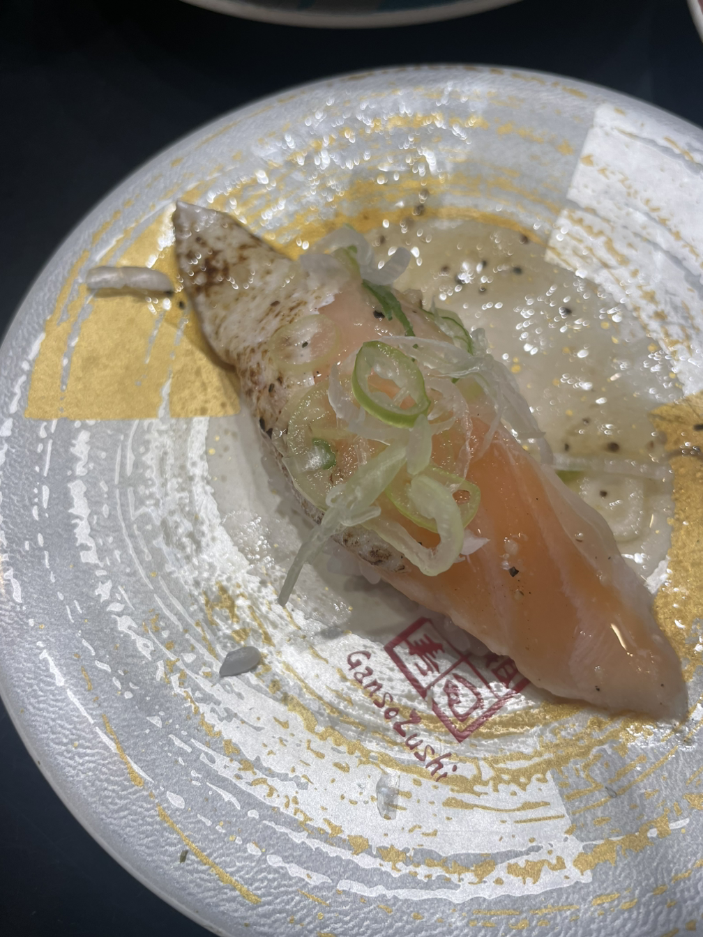 스시는 괜찮았다. 특히 사진의 문어나 연어처럼 무슨 기름으로 양념을 한 스시가 엄청 맛있었다! 이게 뭐지? 문어가 겉보기엔 조금 말라보여서 걱정했는데 괜한 생각이었다. 나는 한국에서는 타코와사비나 아니면 기름 없이 간장에 찍어먹는 것으로만 먹어봐서, 여기서 나오는 문어초밥은 먹어본 적 없는 스타일이라 아주 신선하고 마음에 들었다.
