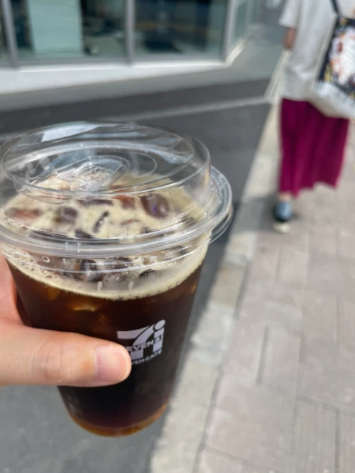 신주쿠 공원 스타벅스에 관심이 있었는데 그마저도 줄을 서야 한다는 말이 있어 가기 싫어졌다. 대신 궁금했던 일본의 편의점 커피를 사서 들고 공원까지 걸어가 보기로 했다. 가끔 보는 유튜브 채널에서 항상 편의점 커피를 사는 장면이 나오는데 맛있어 보여서. 그리고 일본 소설에서도 편의점에서 커피의 맛 조절에 섬세하게 신경쓰는 장면이 있었던 듯하다. 편의점 중에 커피로 평이 제일 좋은 세븐 일레븐을 찾아서 아이스 커피를 뽑았다.
