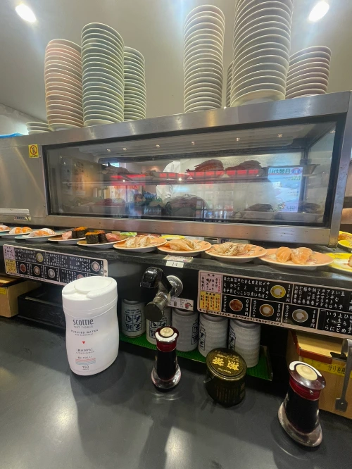 아무래도 저 백인 남자가 외국인 정체성을 뿜뿜하는 통에 아시안인 나를 보고서는 당연히 일본인으로 생각한 것 같다. 나도 영어 메뉴를 달라고 할까 잠시 생각했지만 가볍게 요기만 할 생각이기도 해서 일단 별 말 없이 자리에 앉았다. 레일에 있는 초밥만 주문한다면 굳이 말이 필요하지 않으니.