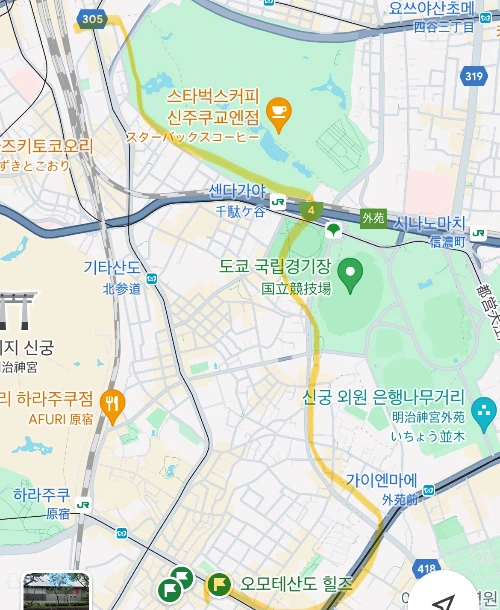 그러면 입장료를 내고 들어가도 되었을 텐데, 지금까지 걸어오면서 공원의 규모를 이미 체감해 버렸기 때문에 시부야까지 걸어갈 체력을 아낄 생각에 + 한참 걷던 중이라 관성이 붙어서 그 앞에서 잠시 서서 쉬다가 그대로 지나쳤다. 관성.. 관성이 문제였다.
