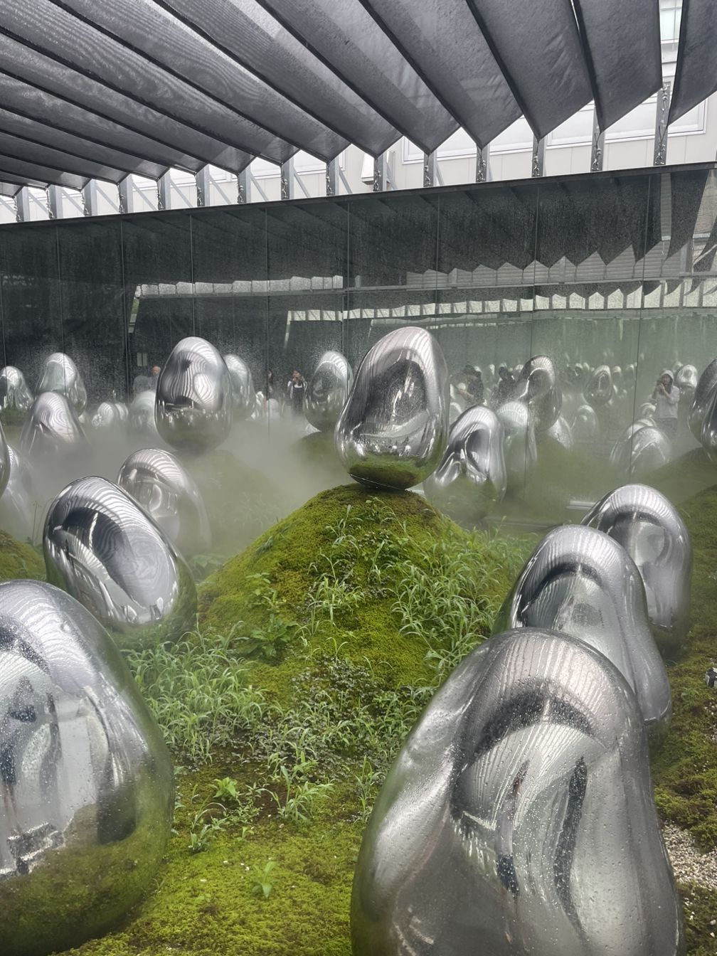 여기까지 보고 나면 이제 전시는 막바지다. 밖으로 안내를 받아(슬리퍼를 준다) 나가면 이끼정원이 있고 알 수 없는 찌부러진 오뚝이(이 표현이 정말 최선인가요) 같은 것들이 정원을 메우고 있다.