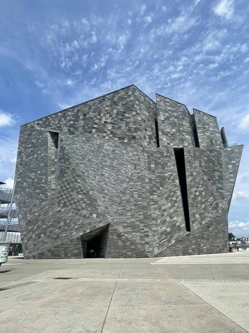 건물 외관은 이런 느낌. 웅장하다. 압도하는 힘이 있다. 각도를 달리하는 여러 면을 만들어서 어디서나 이 건물을 의식하게 된다.