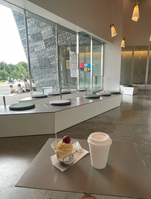 카페에서는 따뜻한 커피와 고구마 몽블랑(괜시리 '홋또 코히'라고 주문해 봤다. 그러나 고구마 몽블랑에서 바로 “에또, ..고레..” ㅎㅎ)을 주문했다. 저 고구마볼이 아래에도 몇 개 더 들어 있는데 쫄깃하고 맛있다. 창밖에서 물놀이를 하다가 쉬는 아이들을 멍하니 바라보며 커피를 마시고 몽블랑을 먹는다.