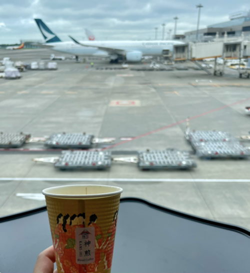 공항에 도착해서는 마지막 먹부림을 부린다. 공항에서는 늘 ‘남은 현지 돈을 소비한다’는 명목으로 시작해서 배보다 배꼽이 더 커지는 편이다. 스이카에 남은 돈을 다 쓴다는 게 그만 일단 먼저 돈을 더 충전해서 쓰는 모양새가 되었다. 얼마를 더 넣어야 하나 계산하느라 잠시 정지해 있자 센스있는 직원(여기도 외국인)이 내가 뭘하려는지 알아채고 계산할 금액과 내 스이카에 남아 있는 금액의 차액을 알려준다. 밥을 먹고 고민하다가 자리가 멋져서 그 옆 카페에서 커피도 한 잔 마신다. 탑승동으로 이동해서 스타벅스까지 간다. 호지차 스틱이 있길래 남은 동전으로는 그걸 산다. 멋진 자리가 있어서 잠시 앉았다 간다.