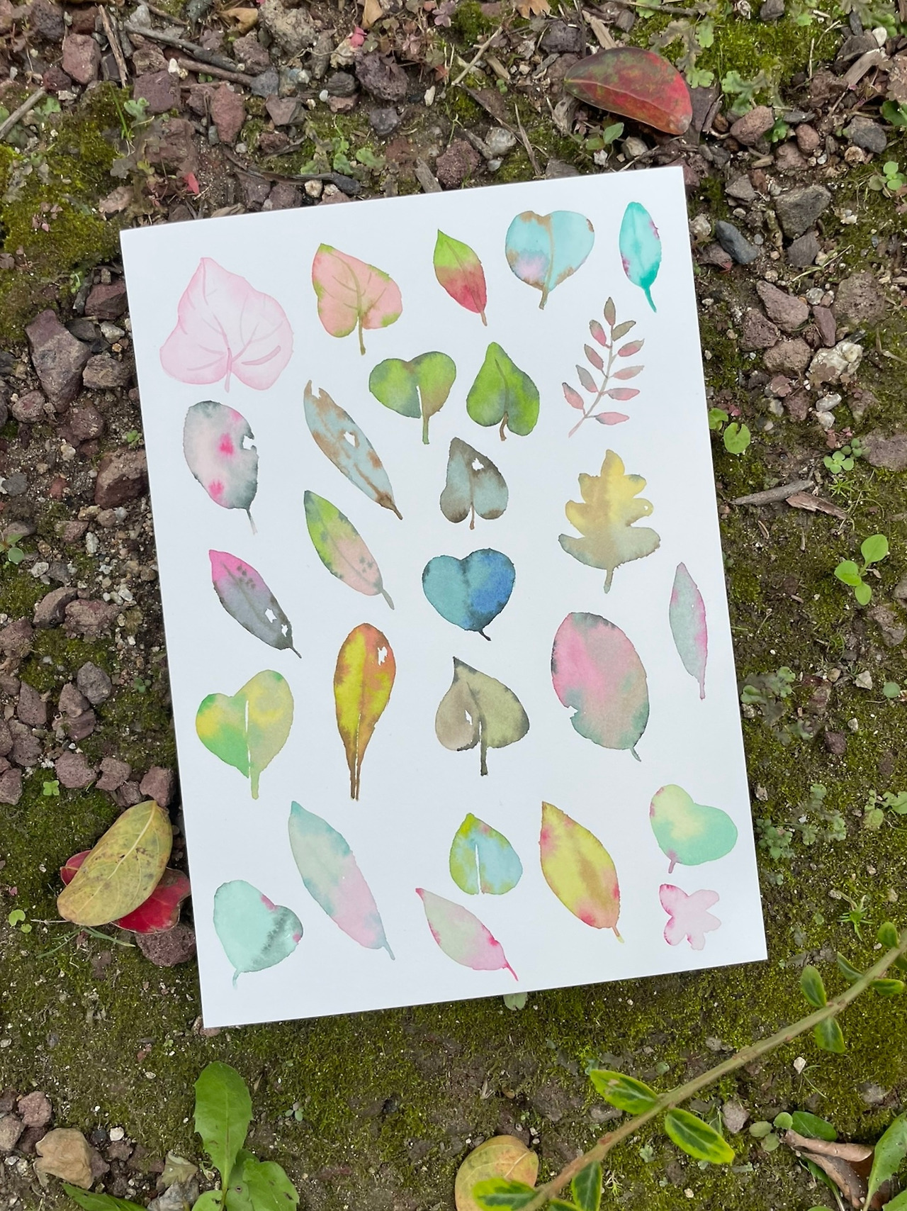 땅 위에 올려둔 잎사귀 그림은 수채화 배운 지 한 달 되던 날의 기록입니다. 우리 모두 한 달이면 그려낼 수 있어요. 스킬은 어눌해도 다시 그리라면 이 느낌 못 냅니다. 곱씹어 말하지만 예술은 취향입니다. 제멋대로 살아가는 우리들이 행위 예술가 아닌가요호홍홍홍.