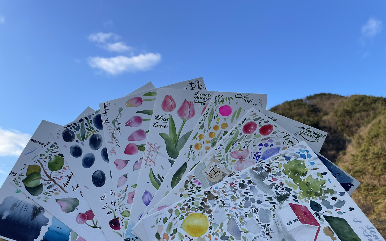 자신만의 색상표를 만드는 일은 수고스럽지만 귀한 재산이 될 일이다. 처음 수채화를 배우러 온 수강생들에게 스승님께서는 꼭 색상표를 만들어보라고 추천하시곤 했다. 허나 딴따라 피가 흐르는 홍디는 곱게 말도 안 듣는다. 핑계를 댄다면 색상표를 공들여 만들어도 살펴볼 인물이 아니다. 매사에 미리 계획하는 J여사이지만 그림 그릴 때만큼은 그날 기분에 따라 조색하는 P가 흐르는 홍디다.