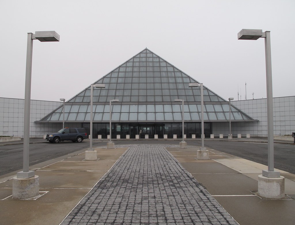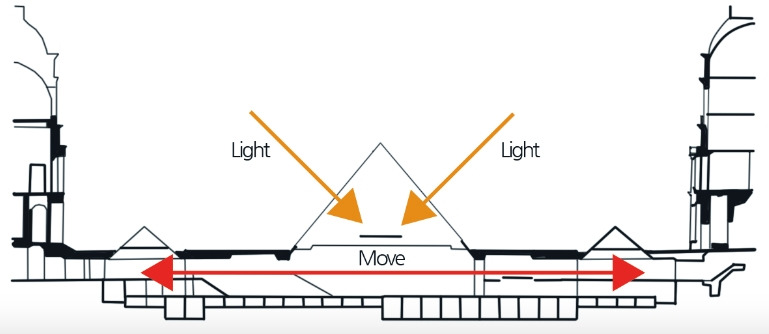다섯 번째, 광장 중앙에 세워진 거대한 피라미드에 주 출입구를 만들면, 박물관 여기저기서 들어오는 혼란스러운 관람객 동선을 한 번에 정리할 수 있다.