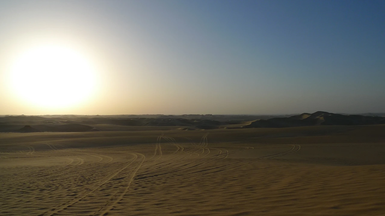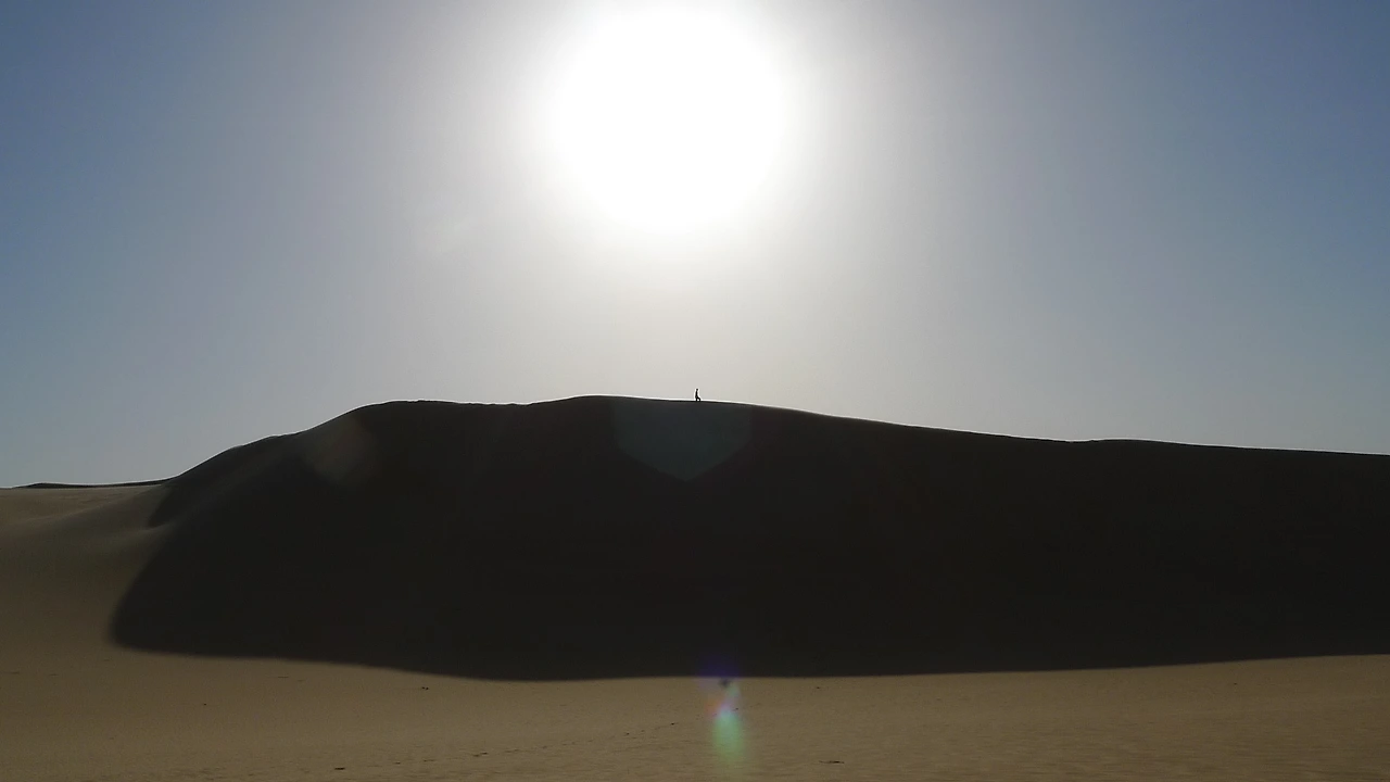 사막의 신은 태양이다. 고로 신이 한창 활동할 시간에 사람 따위가 함부로 돌아다니다간 그대로 타 버리기 딱 좋다. 지프차 운전사가 우리를 픽업 나온 시간도 늦은 오후 4시나 돼 서였다. 지프차는 융과 나, 일본인 아저씨를 싣고 사하라 사막 한가운데로 달리기 시작했다. 어느 순간 아스팔트 길이 끝나고 거짓말처럼 정말 순도 100프로 모래뿐인 사막 위를 달리고 있었다. 크고 작은 모래 언덕의 굴곡 위를 오르내릴 때마다 마치 롤러코스터를 타는듯한 기분에 우리 셋은 연신 소리를 질러댔다.