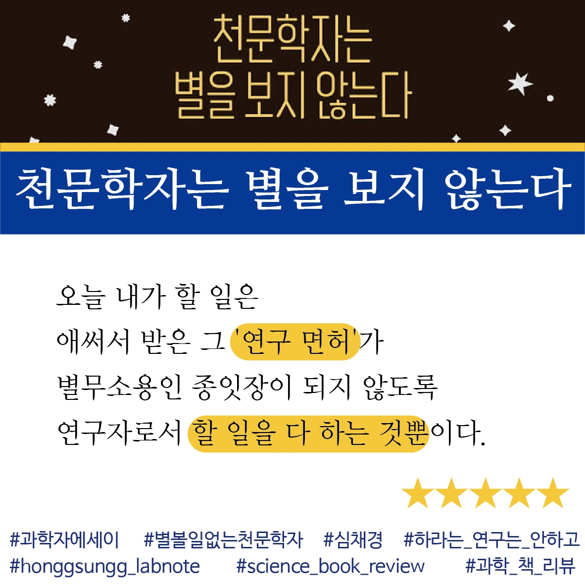 근데 학교 e-book 도서관에 항상 대출 중이던 이 책이 우연히도 대출 가능하길래, 그냥 럭키빅키자나~하는 가벼운 마음으로 빌려봤다. 책은 에세이였고, 대부분은 그의 에피소드로 이뤄지며, 중간중간 짧은 과학 지식들이 박혀있었다. 그는 태양계 저 멀리의 큰 행성을 망원경으로 관찰하고, 나는 아주 가까이의 작은 단백질을 현미경으로 관찰할 만큼 우리는 상이한 분야를 연구한다. 하지만 그가 직업 과학자로서 살아가는 하루하루는 나와 상이하지 않았다. 나는 가벼운 마음으로 시작한 책을 감동과 공감의 눈물로 덮었다.