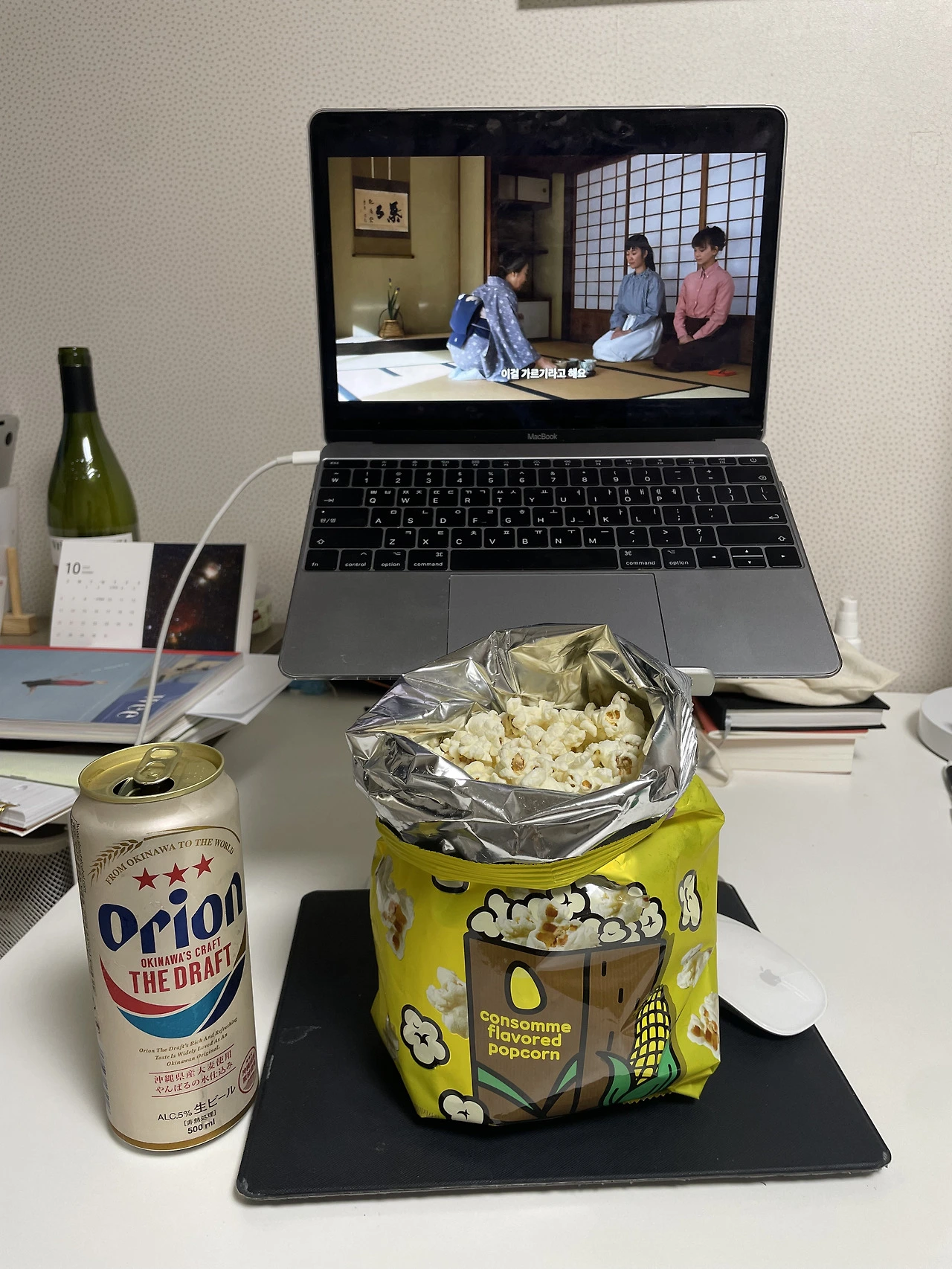 집에 돌아오자마자 가방을 내팽겨치고, 간단히 씻은 후 서둘러 환복, 그리고 일하며 생각해 둔 모든 것들을 식탁 또는 서재방 책상에 세팅한다. 영상을 재생한 후에야 오늘의 술을 숨이 찰 때까지 마신 후 '캬-' 소리 내며 모든 것을 토해낸다. 꼭 '캬~~'하고 소리를 내야한다. 그래야 그 소리에 나의 피로가 함께 터져 나오니까 말이다.