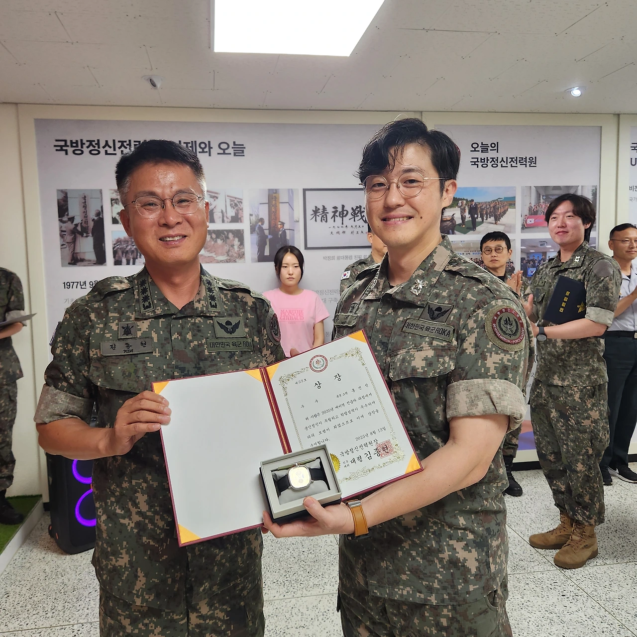 지난 8월 13일, 육군본부에서 주관하여 실시한 ‘2025년 육군 예비역 간부 진급 임용 선발’ 제도를 통해 예비역 소령으로 진급했다. 서류접수, 1차 서류심사, 2차 신체검사를 통해 진급 대상자로 선발된 후 예비역 진급자 교육을 이수하면서 동시에 소령으로 진급하게 되었다. 교육은 정훈병과 교육을 맡고 있는 국방정신전력원에서 2박 3일 간 실시되었으며, 국가관·대적관·군인정신 교육부터 전쟁법, 동원교육, 합동공보작전 교육 등 교관에 의해 야간교육까지 빈틈없이 진행되었다. 나를 포함하여 교육에 참여한 총 9명의 예비역 대위와, 1명의 예비역 하사는 정훈병과 예비역으로서 부끄러운 모습을 보이지 않기 위해 최선을 다 해 교육받았다. 우리는 정훈장교로서 임무에 최선을 다했으며, 정훈병과 예비역으로서 부끄러움 없이 사회에서 살아가기 위해 노력하고 있다는 것을 선배, 동기 그리고 후배에게 보여주고 싶은 마음으로 말이다.