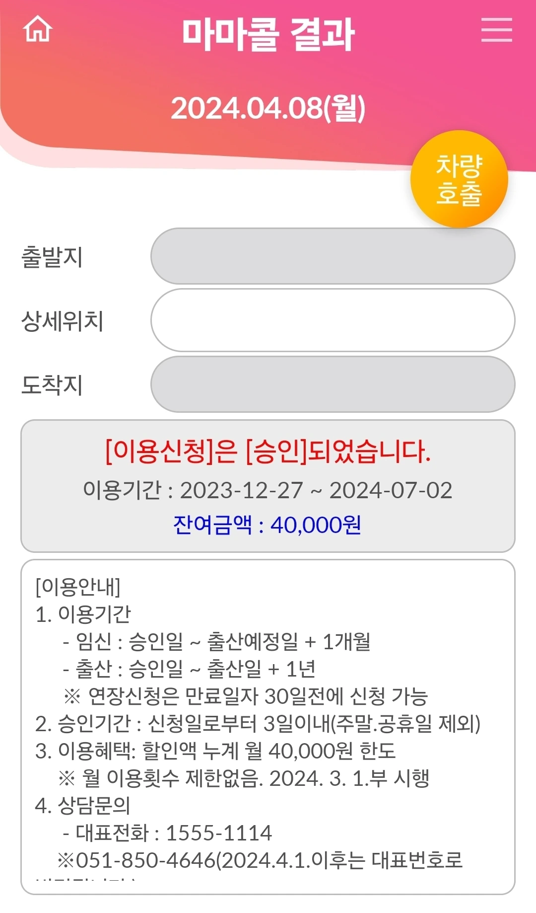 정말 알뜰하게 잘 사용하고 있는 마마콜. 부산 지역 거주 임산부에게 월 4만원 이내로 택시비를 지원하는 어플이다. 65%는 지자체에서 지불하기 때문에 최종 택시비에서 차감되고 나머지 35%만 결제하면 된다. 택시비가 1만원 나오면 3,500원만 지불하면 되니 아주 쏠쏠하다. 임신 중후기에 접어들면서 배가 무거워졌을 때부터 잘 사용하고 있다. 다만 등대콜과 협약되어있어 등대콜만 가능하고, 콜택시로 불러야 해서 주변에 등대콜이 없으면 배차가 안된다. 출퇴근 시간 등에는 잘 안 잡히는 단점도 있다.