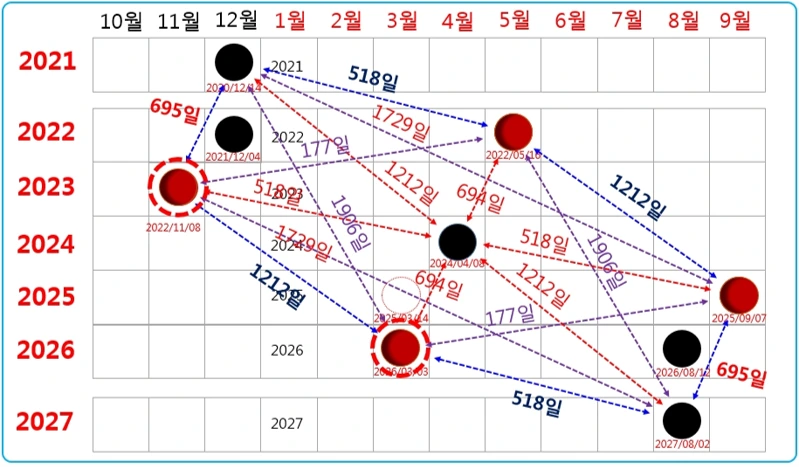 이후 여기에 개기일식과 금환일식을 채워넣었다.