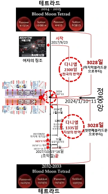 (유월절과 초막절로 구성된 블러드문 4개의 징조를 테트라드라고 한다. 이 징조의 한 가운데 또한 1/10~11이다.