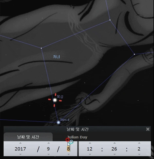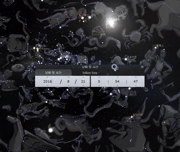 스텔라리움 프로그램으로 시간을 거슬러 첫째날을 살펴보니 놀랍게도 누군가 일부러 표시해둔 것처럼 개기일식이 있었다.