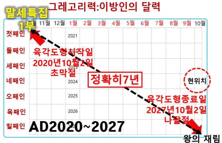 6) 이러한 징조들은 공통적으로 2027년의 10월 2일 나팔절을 가리키고 있다.