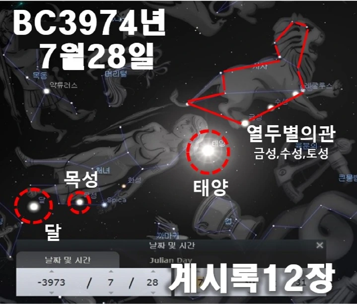 (BC 3974년 여자의 징조가 있었던 7월 28일은 수요일이었다.