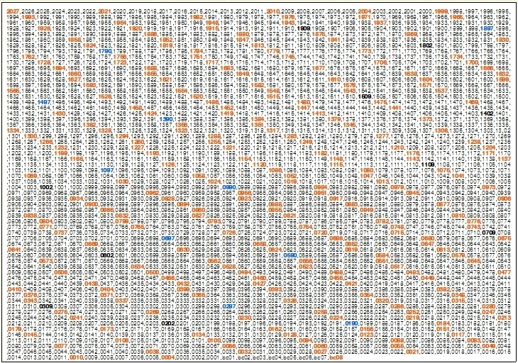 연도 간격이나 육각도형만 같은 것이 아니라, 이 4개 해는 전부 달력이 같았다. 이 달력에도 어떤 패턴이 있을 것이라 생각했던 이 형제는 워드로 년도를 하나하나 입력해보면서 패턴을 찾기 시작했다.