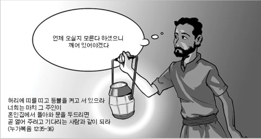 너희는 마치 그 주인이 혼인 집에서 돌아와 "문을 두드리면 곧 열어 주려고 기다리는 사람과 같이 되라"