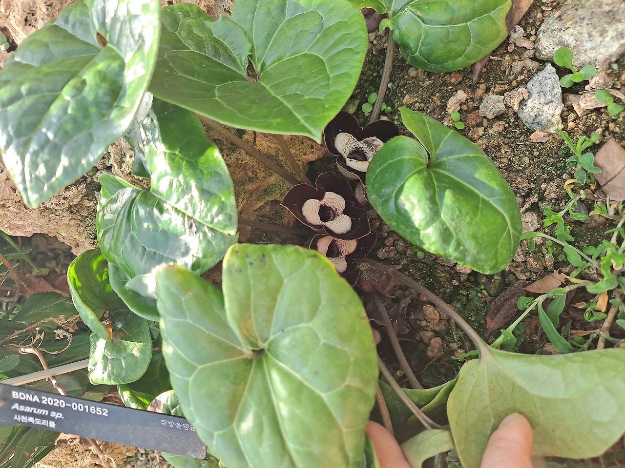 넓은 잎 뒤에 꽃을 숨기고 있었다