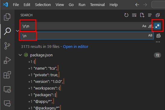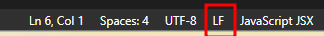 에디터의 하단의 설정을 바꿔줄 수 있다. 하지만 파일의 개수가 많을 경우 일일이 해야 하는 번거로움이 있다. 문자 일괄 변경을 통해 모든 파일을 한번에 LF나 CRLF로 변경해줄 수도 있지만 전체 프로젝트가 변경되는 부분이니 조심스럽게 바꾸는 것이 좋겠다.