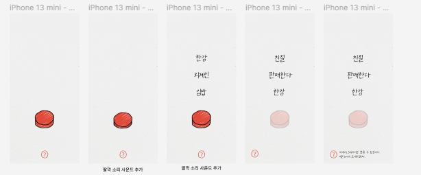 그래서 배경은 종이 질감의 이미지를 넣었고 폰트는 네이버 손글씨 폰트를 사용했다. 사실 단어를 모두 직접 손글씨로 쓰고 싶었는데, 지금 생각하면 엄청 억울할 뻔했다. 그 고생해서 손글씨로 썼는데 심사 통과도 못하면 흑. 버튼 일러스트는 내가 직접 그렸다. 옛날부터 아이폰 일러스트 앱에 취미 삼아 끄적이던 손그림 일러스트를 그리곤 했었는데, 그 실력이 유용하게 쓰이는 순간이었다. 어설픈 나의 실력이 오히려 투박한(?) 분위기를 풍겼다 라고 스스로를 위안했다.