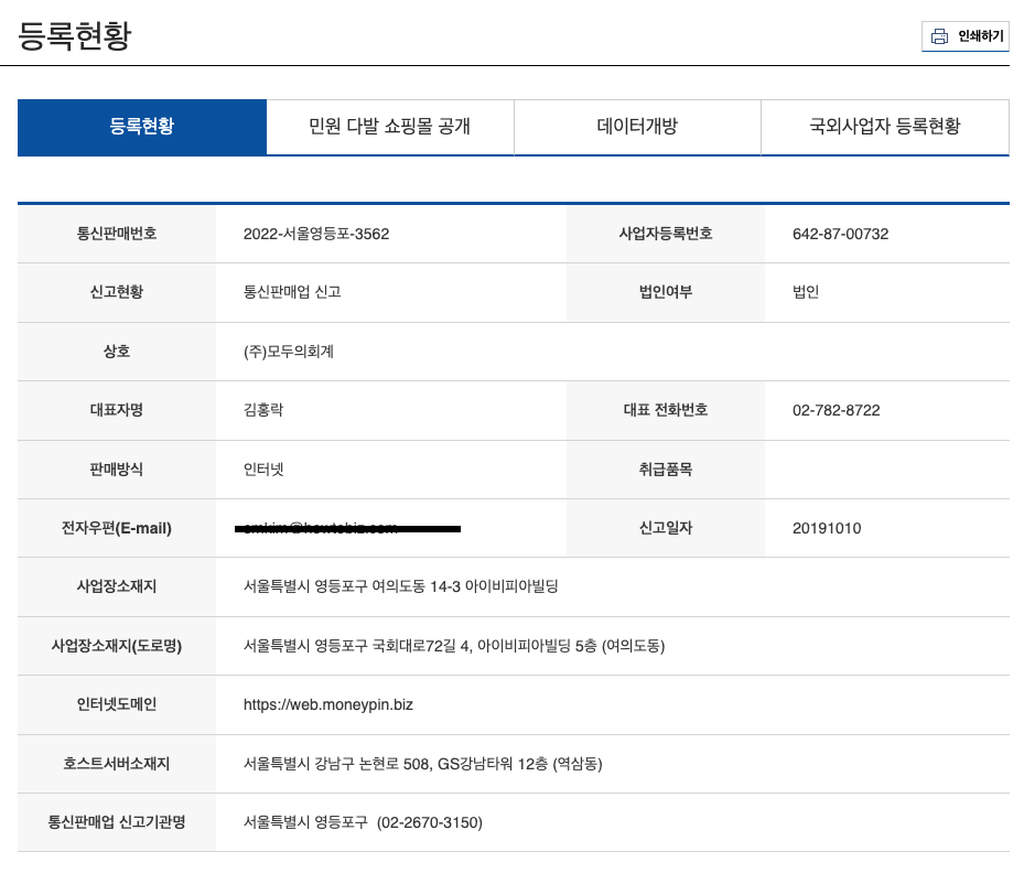 그 중에서 가장 많은 사업자정보는 통신판매사업자에 대한 정보인데 온라인 판매업(전자상거래업)을 하는 경우 시·군·구청에 통신판매업 신고를 해야 하는데 그 정보가 정확한 사업자 정보를 통해 안전한 거래를 할 수 있도록 공정거래위원회에 취합되고 공개되는 것이다.
