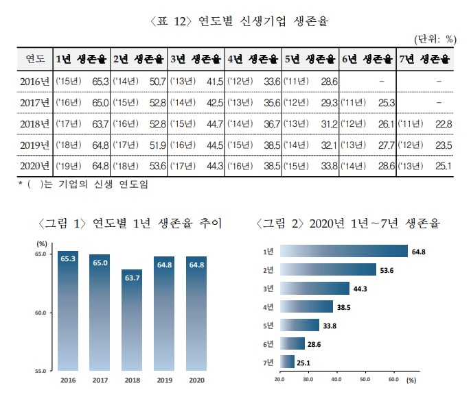 1년 내에 35.2%가 폐업한다. (생존율: 64.8%)
