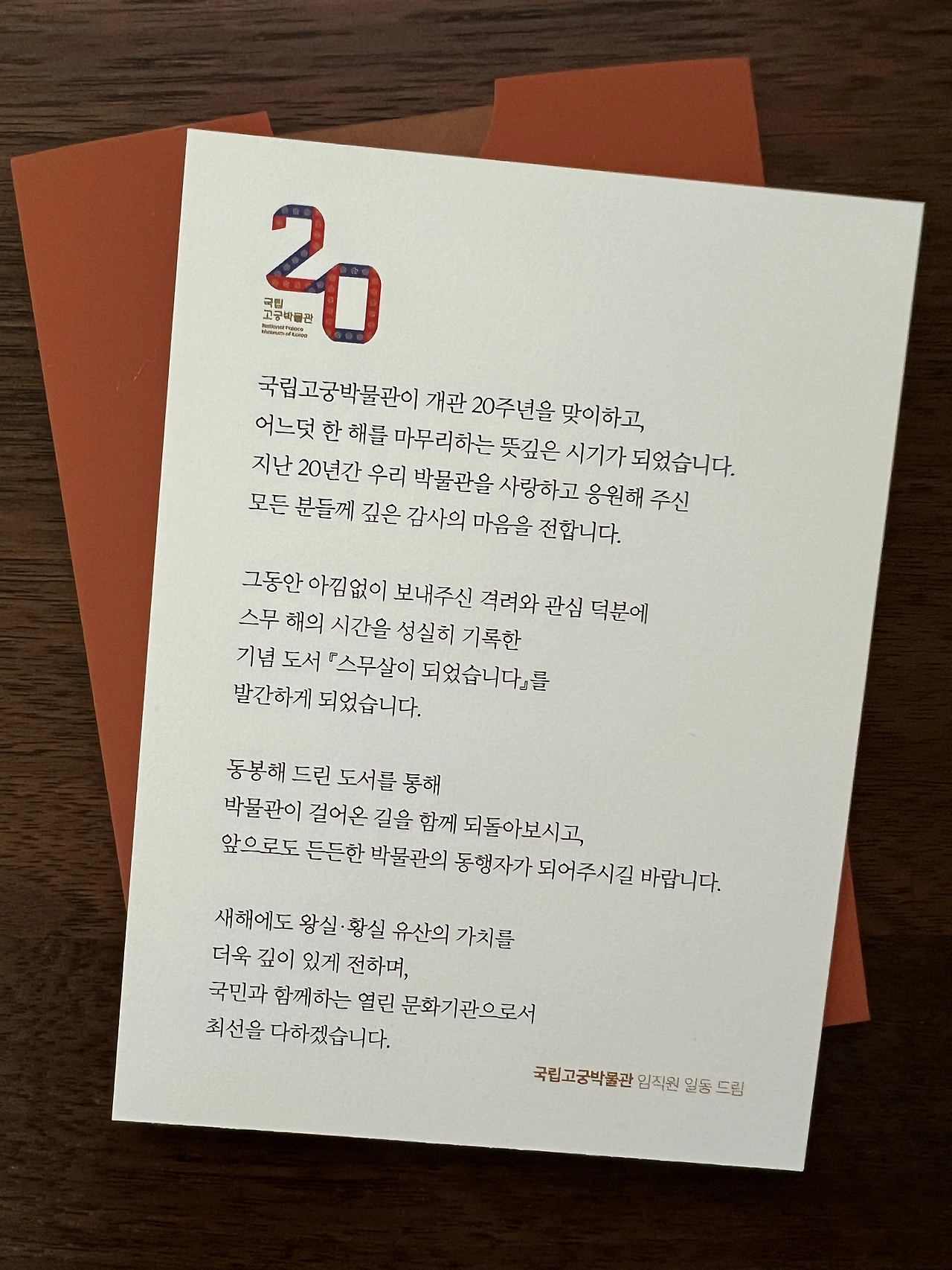 2025년 여름을 쏟아부었던 ‘국립고궁박물관 20년사‘ 책을 받았다. 제목은 <스무살이 되었습니다>. 나는 이 책의 텍스트 집필을 맡았다.