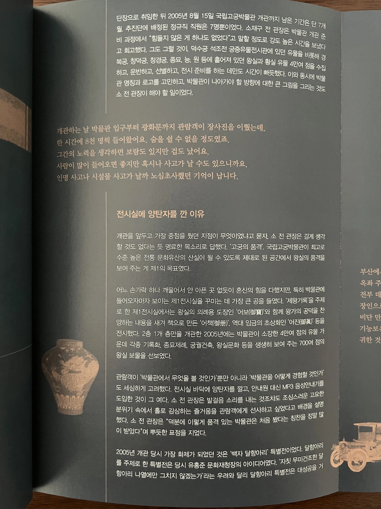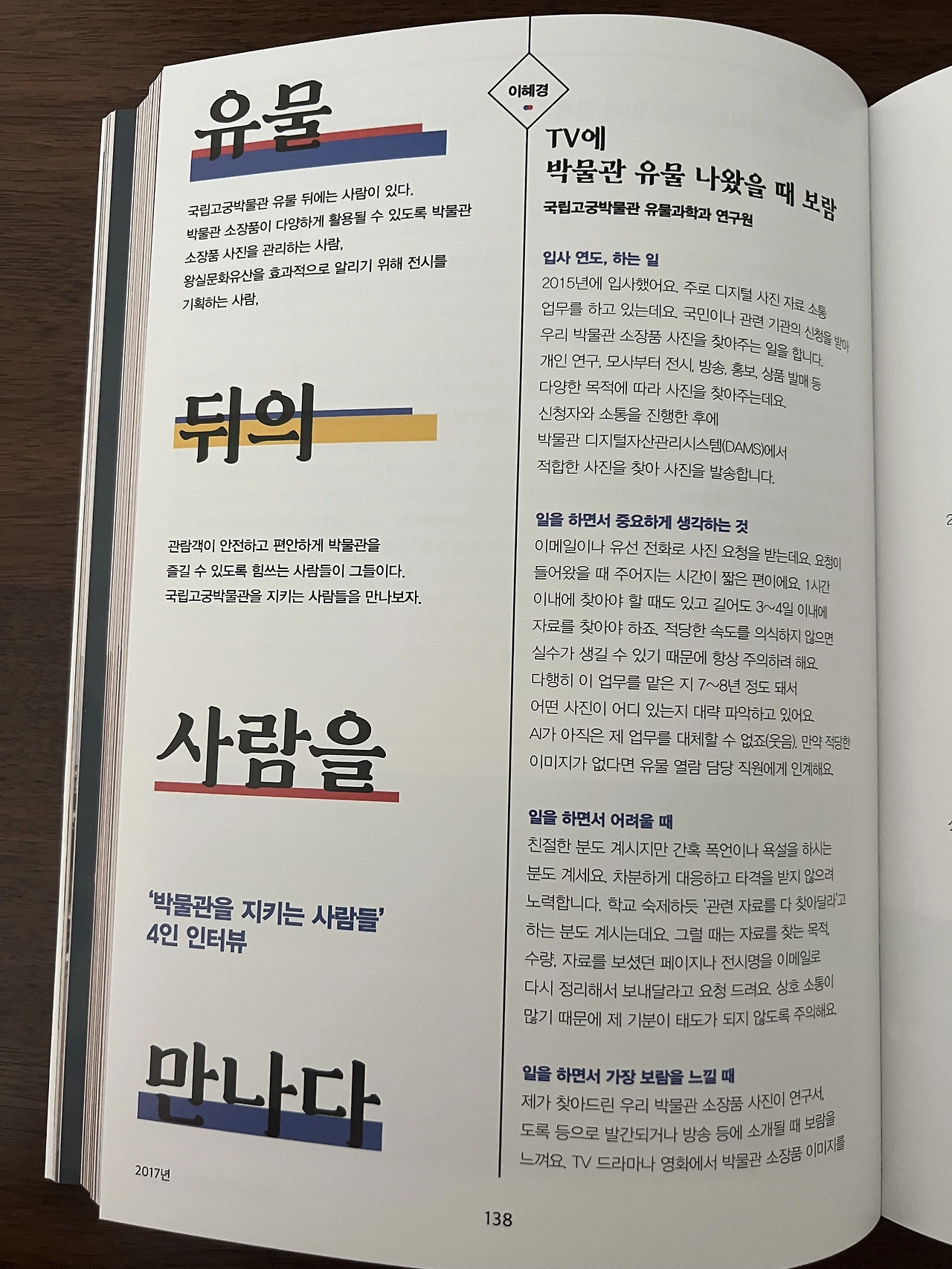 20년간 박물관을 지켜온 안전 관리원, 청원 경찰과 인터뷰하는 경험도 특별했다. 인터뷰가 아니라면 만날 수 없는 사람, 인터뷰가 아니라면 들을 수 없는 이야기를 마주할 때 이 일을 참 하기를 잘했다고 생각한다.