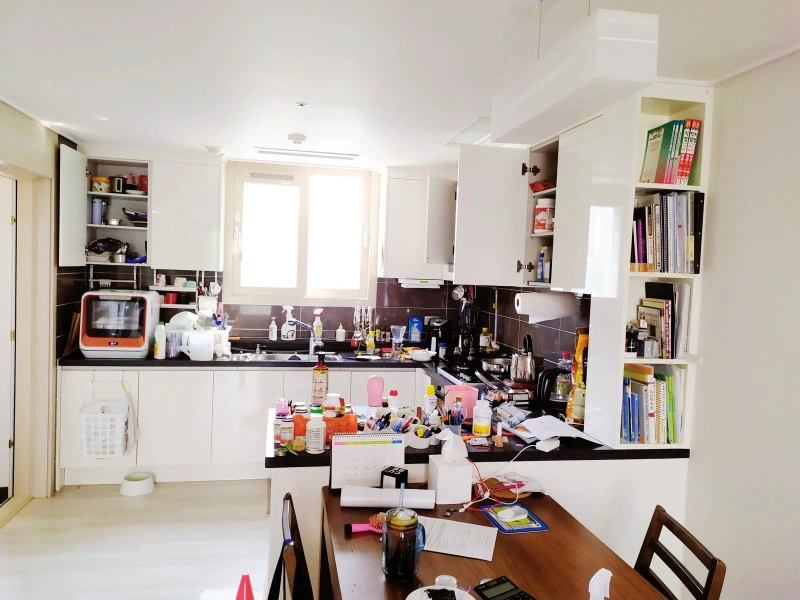 저는 어느순간 깨닫게 된거예요. 앗… 집이 쓰레기장이다. 내가 왜 이러고 있지? 당시 가족들을 찍은 사진을 보면 집이 딱 도둑이 다녀간 집처럼 보입니다. 정리 사진을 보면 딱히 비포어 사진을 찍으려고 찍은 사진도 아닌데 뭔가 비포어 사진처럼 보입니다.