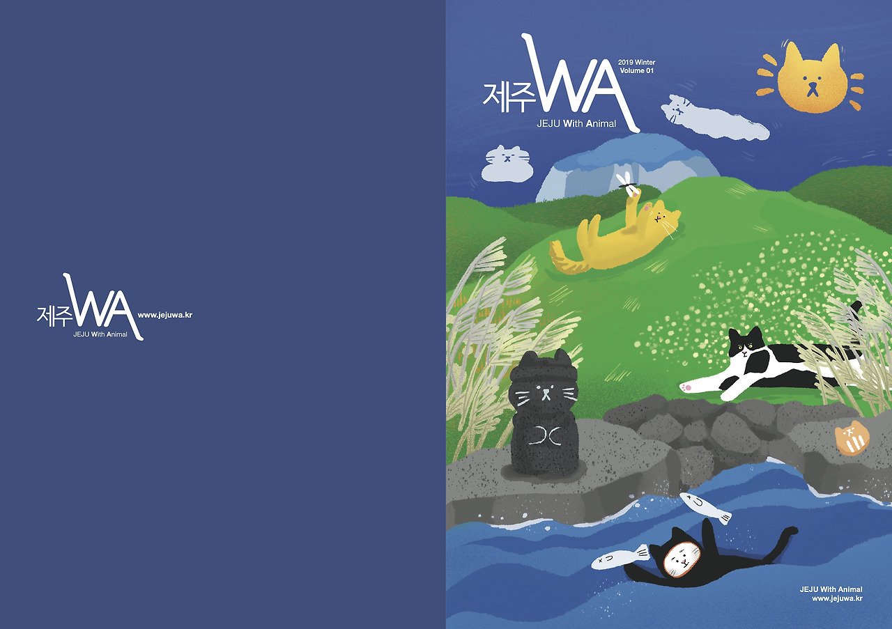 만들게 된 계기는 무척 단순했어요. 2~3년 전, 제주시 지원으로 '제주동물잡지'라는 컨셉으로 잡지 한 권을 만들게 되었어요. 특집은 '고양이 굿즈'였고 유기동물후원과 관련 있는 고양이 굿즈를 선보였답니다. 그래서 표지에도 고양이 일러스트가 들어갔는데 너무 예뻐서 마음에 꼭 들었었답니다.