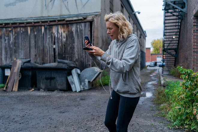영화 <패닉 런>(2022)은 주인공 ‘에이미’의 아들 ‘노아’가 다니는 고등학교에서 벌어진 총기 사고를 두고 전개된다.