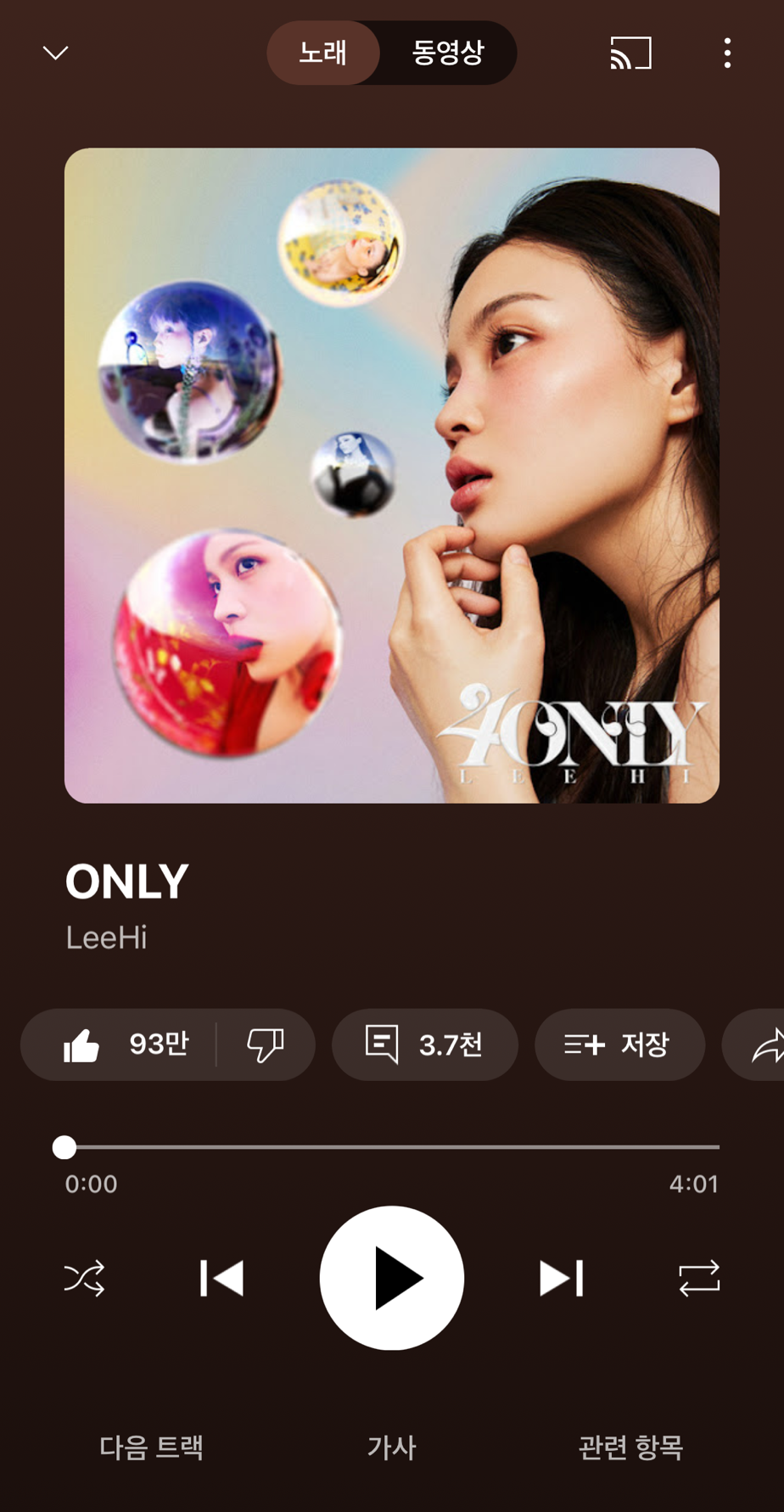 어둡고 깊은 밤의 초입에 어울리는 노래다. 가사는 사랑을 구애하는 내용이지만 이하이의 목소리가 주는 무드와 차분한 반주의 조화는 몽환적인 세계로 들어가는 느낌을 준다. 난 노래의 가사보다 사운드를 중시한다. 가사의 내용은 무시한 채 가수의 목소리와 반주가 주는 여운에만 집중해 나만의 이야기로 노래를 상상하는 과정을 좋아한다. 그런 내게 ONLY는 애절한 이별 후 시간이 지나 담담히 사랑하는 이를 떠올리는 노래로 다가온다.