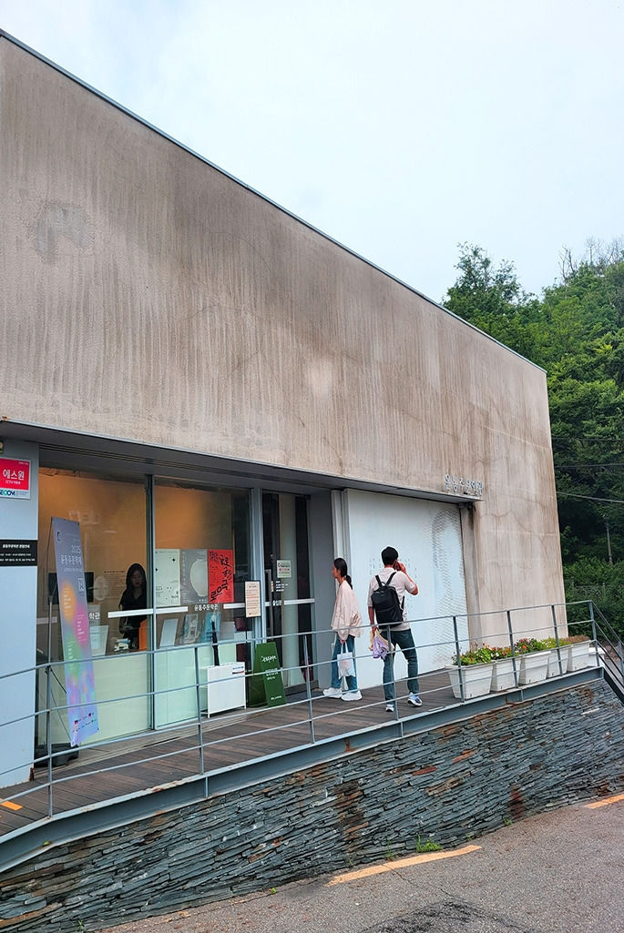 윤동주 문학관으로 가는 길에 서촌에서 윤동주가 하숙한 집의 안내판을 보았다. 그건 생각지도 않게 윤동주를 만나기 위한 예습이 되었다. 윤동주 문학관은 수수하고 아담했다. 특별한 장식이 없는 건물 외벽에 유리로 된 1층 전시관이 오픈된 형태였다. 건물 외관은 군더더기 없이 깔끔하고 담백했다.
