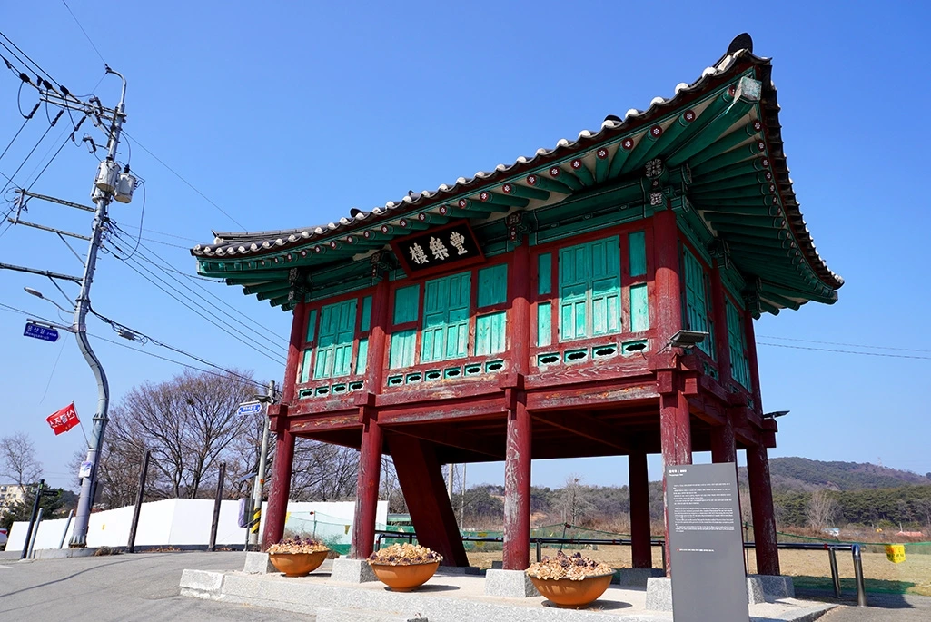 마을 안에는 시간을 거슬러 올라간 옛 건물이 있다. 풍락루(豐樂樓)라고 하는 건물로 지금은 사라진 면천 관아의 문루였던 누각이다. 원래의 이름은 반월루였지만, 중수하던 1852년 그 당시 면천 군수가 풍락루로 바꾸었다고 한다. 살기 좋은 땅에서 백성과 더불어 평안하고 풍년이 들기를 기원하는 마음으로 지은 이름이었다. 풍락루는 역사 유적이지만 특별나게 보호하는 것처럼 보이지는 않았다. 역사 유적으로 특별한 존재이기보다 사람들과 함께 어우러져 있는 자연스러운 모습이었다.