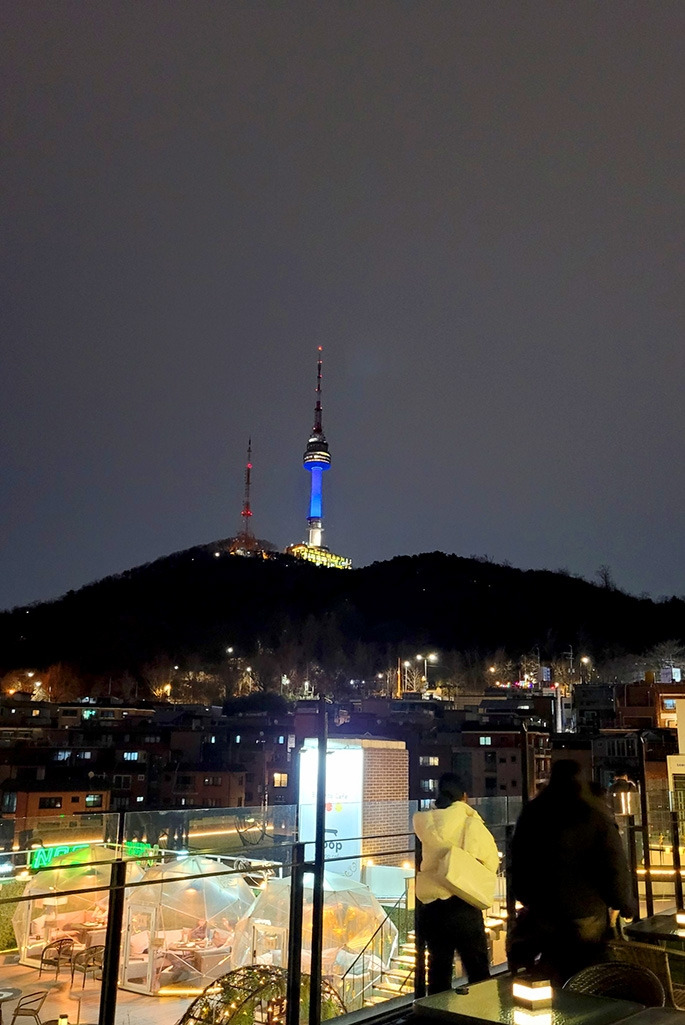 해방촌의 아름다운 노을 경치는 이미 많이 알려졌다. 그 멋진 경치를 보려고 일행들과 전망 좋은 루프톱 카페를 찾았다. 운이 좋았던지 찾아간 곳은 루프톱이 아주 넓었다.
