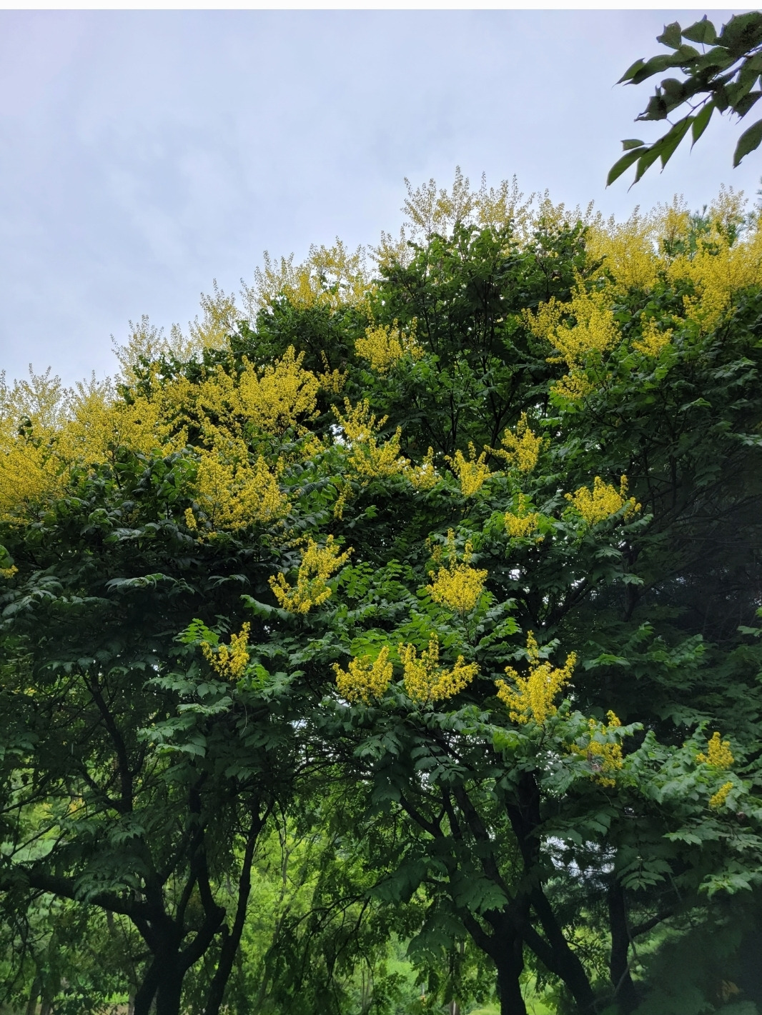 이곳의 모든 꽃과 나무들 중 으뜸은 6월 말 경에 노란 꽃을 피우는 모감주나무인데, 이는 Golden Rain Tree라는 영어 이름 그대로 황금비가 쏟아져 내리는 듯한 그림을 그려낸다. 모감주나무란 이름은 옛날에 스님들이 이 나무의 열매로 염주를 만들어 목에 걸고 다녔다는 데에서 유래한 것이라 한다.(재미있고 인상 깊은 이름이다!^^) 처음 이 나무 앞에 섰을 때, 나는 입이 딱 벌어져 한동안 다물 수가 없었다.키가 큰 나무에 매달린 온통 노란빛의 꽃은 바야흐로 여름의 축제가 시작됨을 선포하는 거대한 불꽃놀이처럼보였다.