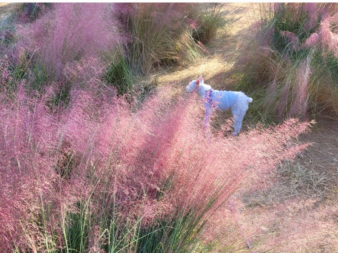 다음으로 망고와 내가 좋아하는 곳은 하늘공원이다. 특히, 가을의 억새풀과 핑크 뮬리가 우거진 하늘공원은 그 화려함이 유명해서 모든 연인들의 데이트 장소로 손꼽힌다. 이곳은 지대가 높아 무려 210개나 되는 계단을 올라가거나, 나선형으로 만들어 놓은 산책로를 이용하거나, 맹꽁이 전기차를 타고 올라가야 한다. 세 코스 모두 각기 다른 아름다움이 있어서 갈 때마다 다른 코스를 경험해 보는 것도 하늘공원 사용의 좋은 방법이라 하겠다.