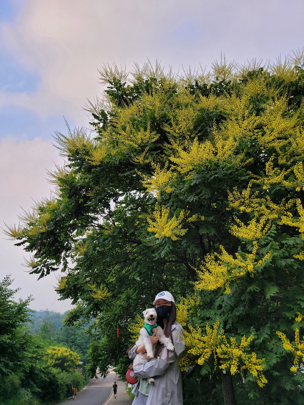 바로 오른쪽 인도의 우거진 나무들이 반가이 손을 흔든다. 터널을 이루고 있는 가로수는 여름엔 그늘을, 가을엔 황홀한 낙엽길을, 봄엔 싱그러움을, 겨울엔 눈꽃나무를 만들어 내어 망고와 내 산책길을 인도하는 레드카펫 역할을 담당한다. 망고와 나의 심장은 이 가로수길에서부터 쿵쾅댄다. 망고는 차 뒷자리에서 창문 밖으로 고개를 내밀어 낑낑거리기 시작하고, 나는 머릿속으로 오늘은 어떤 코스를 택할 건지 잠시 고민에 빠진다.