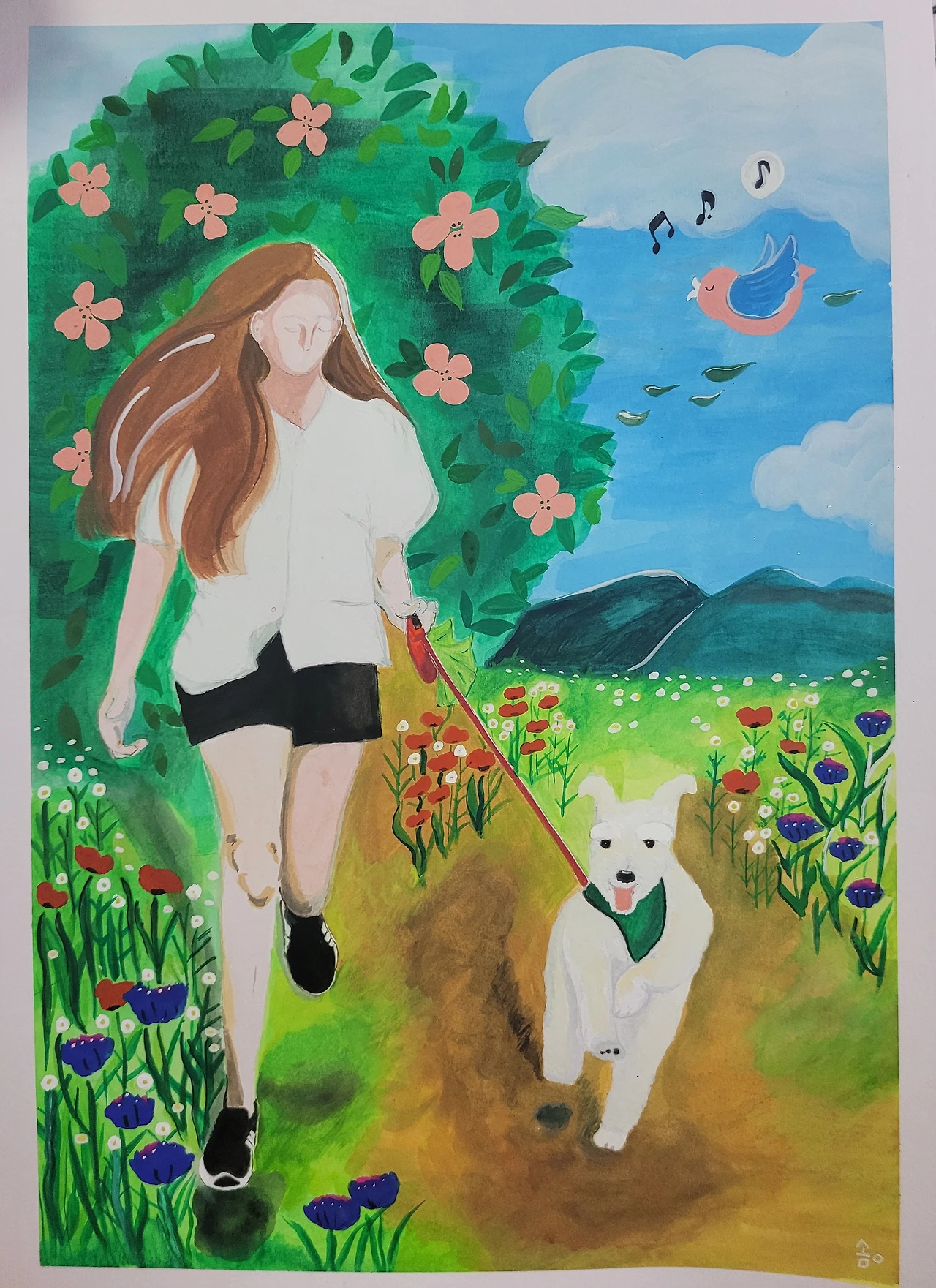 그러던 어느 날, 인스타에서 강아지 그림 전시를 한다는 작가 모집 광고를 보게 되었다.
