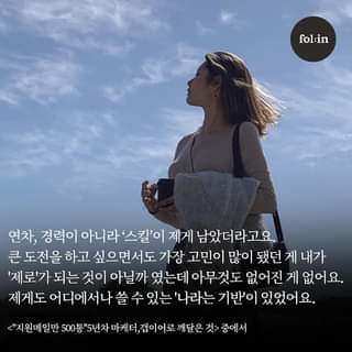 그때의 나는 일로서 나를 증명하려고 애쓰면서 살고 있었고 그러면서도 '나는 일을 사랑하니까'라는 이유를 대고 있었다. 사실 일을 사랑하기보다는 일에 몰입해서 받은 성취감 밖에 즐길 것이 없는 상태에 가까웠었다.