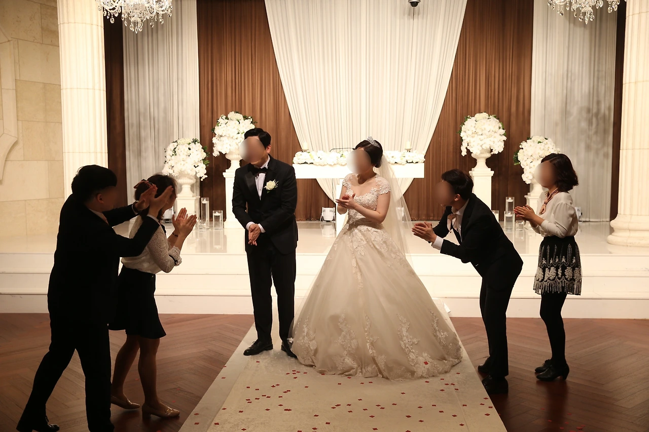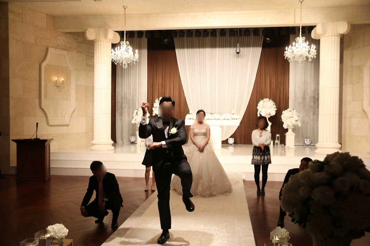 웨딩드레스를 차려 입고 일찍부터 신부 대기실에서 대기하고 있었다. 당최 주목받는걸 어색해하다 보니 나는 시시각각 고장 나는 중이었다. 멀리서 한달음에 나의 결혼식을 찾아준 하객들에게 기괴한 미소를 지어 보일 때쯤, 홀에서 전주가 들려왔다. 리허설을 시작한 모양이었다. 듣자마자 요즘 말로 ‘찐 웃음’이 튀어나왔다. 맞다. 나는 내 친구들과 함께 핫데뷔를 앞두고 있었다. 시작은 비루하고 도전 과정은 남루하였으나, 결국엔 로맨틱, 성공적일 무대를 떠올리니 갑자기 ‘오늘 진짜 재밌겠다’는 생각이 들었다. 다 똑같은 결혼식에 재미라도 선사하고자 도전했던 축무는 나를 가장 흥겹게 만든 것이다.
