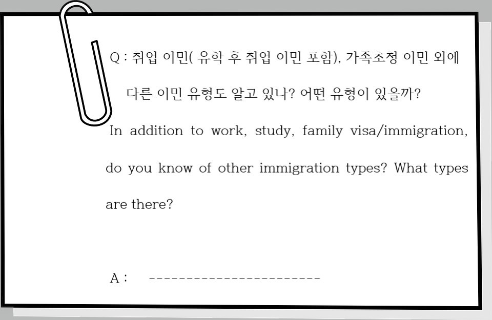 이민 준비의 첫단계는 위의 큰 분류 중 어떤 유형이 본인과 맞는지를 파악하는 일이다.